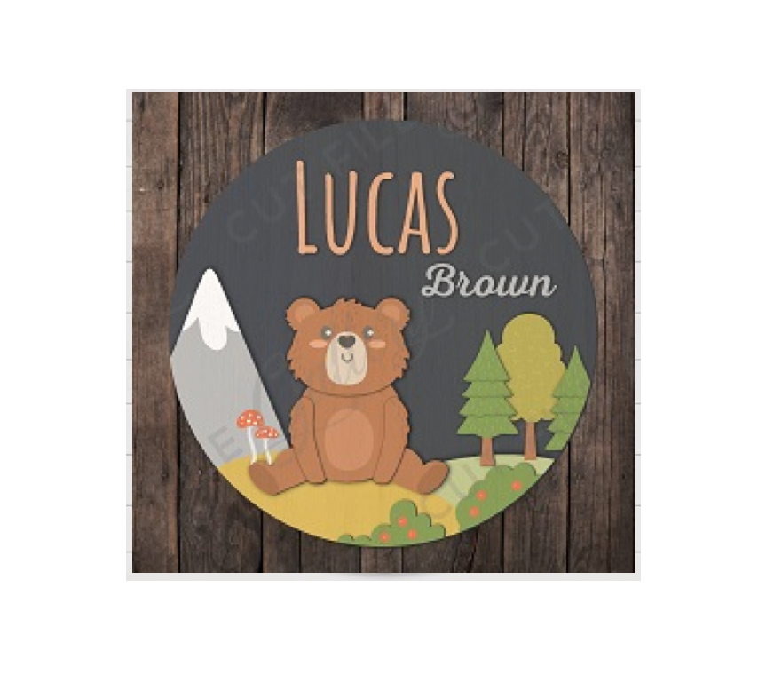 3d Round Bear Themed Nursery Baby Name Personalized Sign
