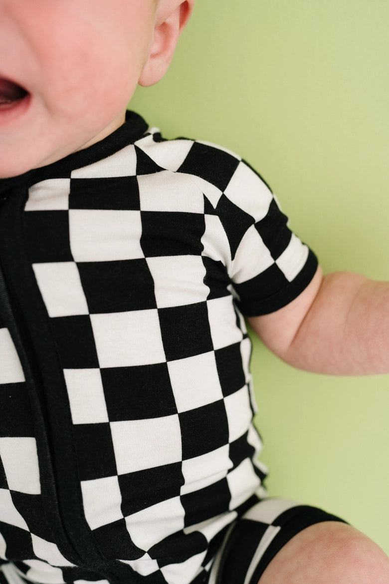 Black Checkered Bamboo Short Romper